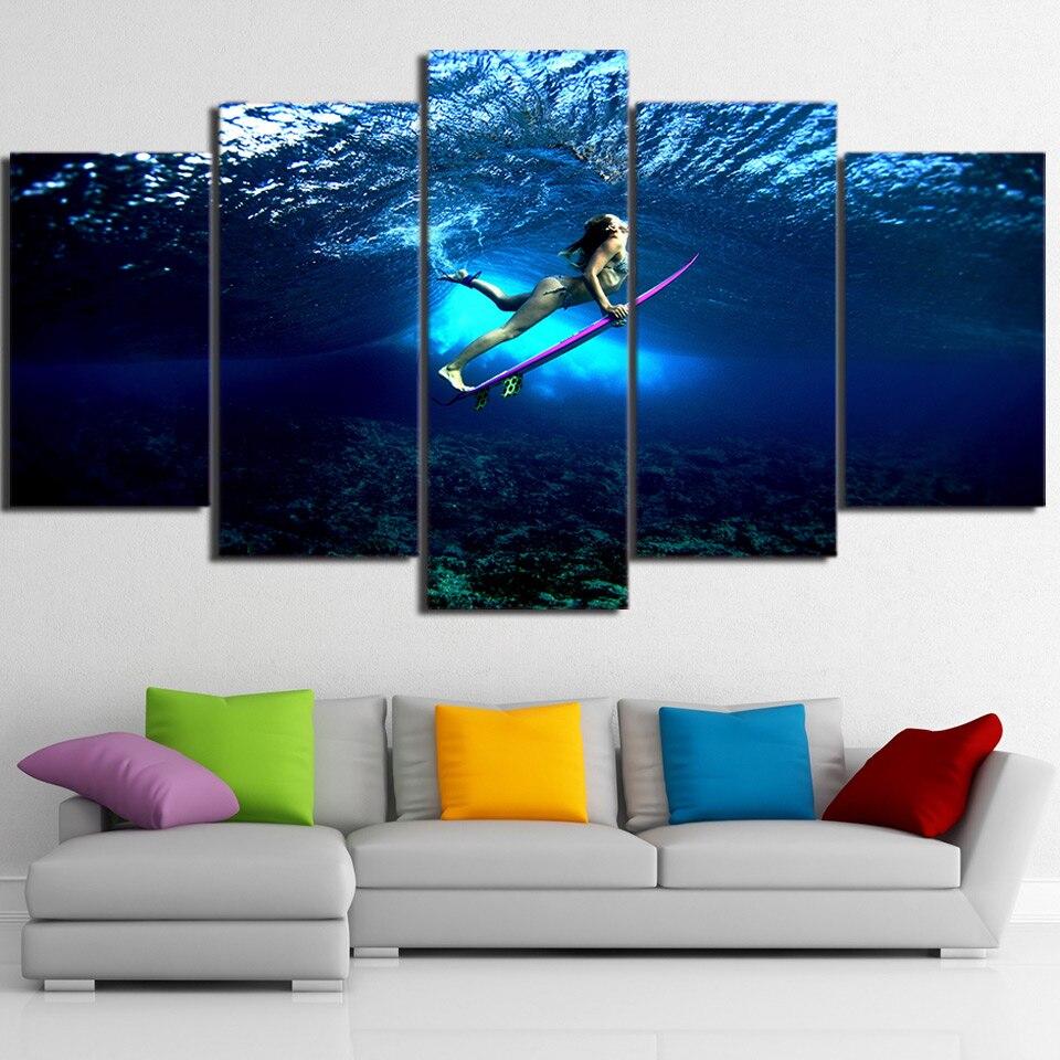 – Tableau, déco murale d’une surfeuse pro sous une vague.