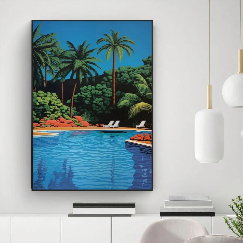 Laissez-vous tenter par notre tableau villa piscine style japonais, une impression sur toile qui apporte une touche d’élégance à votre décoration ! Ce tableau décoratif imprimé sur toile présente une scène paisible : une villa moderne avec piscine, entourée de verdure, le tout dans un style japonais. Véritable invitation au calme, cette impression sur toile est parfaite pour créer une ambiance zen dans un salon, une chambre ou une salle de bain, s’accordant avec tout type de décoration, de la minimaliste à la contemporaine.