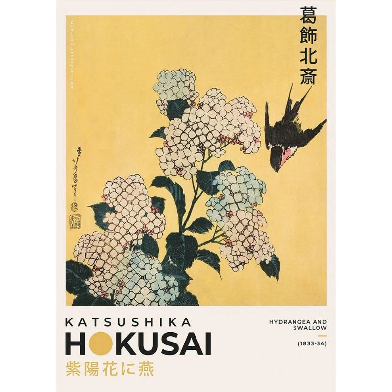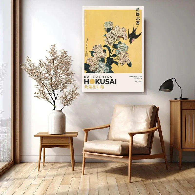 Ces reproductions de peinture modernes reprennent les œuvres emblématiques de l’artiste japonais Katsushika Hokusai. Un triptyque qui comprend le mont Fuji, la grande vague de Kanagawa et le fameux tableau décoratif hydrangea and swallow.