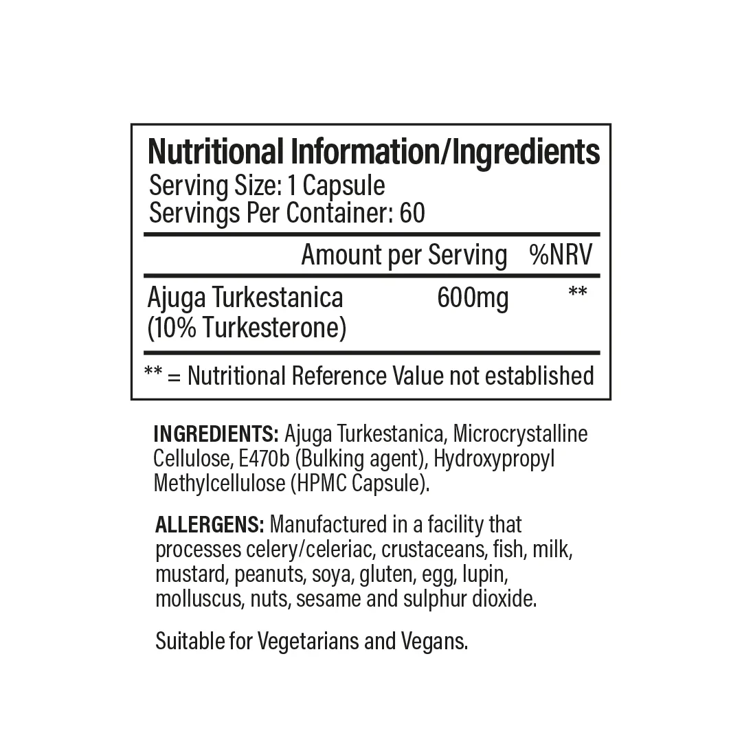 Dosage recommandé : 1 gélule par jour (600mg d’Ajuga Turkestanica).