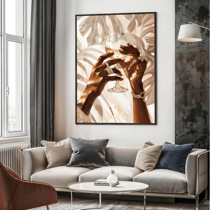 Ce tableau décoratif ultra-original capture l’essence de l’été à travers un verre de vin blanc tenu par des mains féminines. Avec ses couleurs solaires et sa composition élégante, cette reproduction de peinture sur toile rappelle les apéritifs en terrasse, les vacances et la dolce vita estival ! Idéale pour la cuisine, la salle à manger ou un coin bar, cette impression sur toile ajoute une note moderne à n’importe quelle pièce… La touche artistique parfaite pour créer une ambiance conviviale dans votre intérieur.